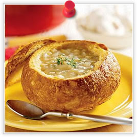 Soupe à l’oignon dans des bols en pain Recette